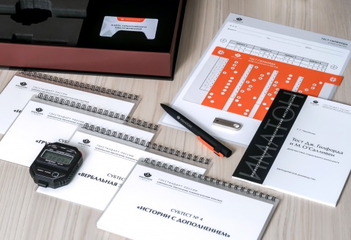 Стимульный материал представляет собой набор из четырех тестовых тетрадей. Каждый субтест содержит 12-15 заданий. Время проведения субтестов ограничено. Тестирование проводится в бланковом формате при помощи специальных ключей, полученные результаты можно обработать с помощью компьютерной программы, входящей в состав методики. Перевод «сырых» оценок в стандартную шкалу дает возможность сравнивать степень выраженности отдельных способностей к познанию поведения (социального интеллекта) у конкретного испытуемого (индивидуальная диагностика с построением профиля социального интеллекта), а также сравнивать уровень развития способностей к познанию поведения у разных людей (интериндивидуальная дифференциальная диагностика). Компьютерная программа содержит краткую тестовую интерпретацию результатов. Необходимо помнить, что успешность выполнения теста положительно коррелирует со скоростью мышления, образовательным уровнем обследуемого и не зависит от его пола.